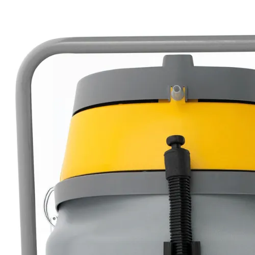 Aspirador de pó/água de alta capacidade com carrinho. Dois motores com controle independente. A versão IK conta com tanque de aço inoxidável e kit antiestético. Filtros de cartucho opcionais (normal e HEPA).