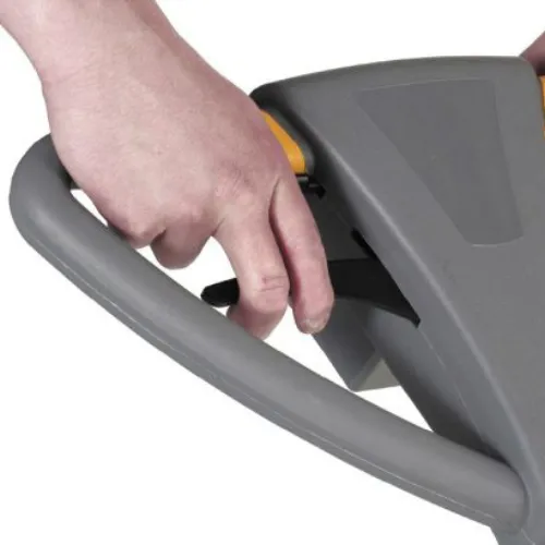 - O botão frontal facilita o ajuste da incidência da escova ao piso, garantindo uma aderência perfeita com todos os acessórios em qualquer tipo de superfície de trabalho.