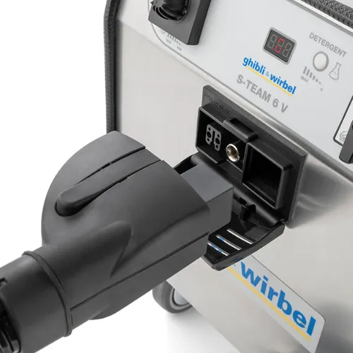 - O S-Team 6 V é o gerador de vapor de sucção profissional projetado para limpeza e desinfeção de superfícies e ambientes.